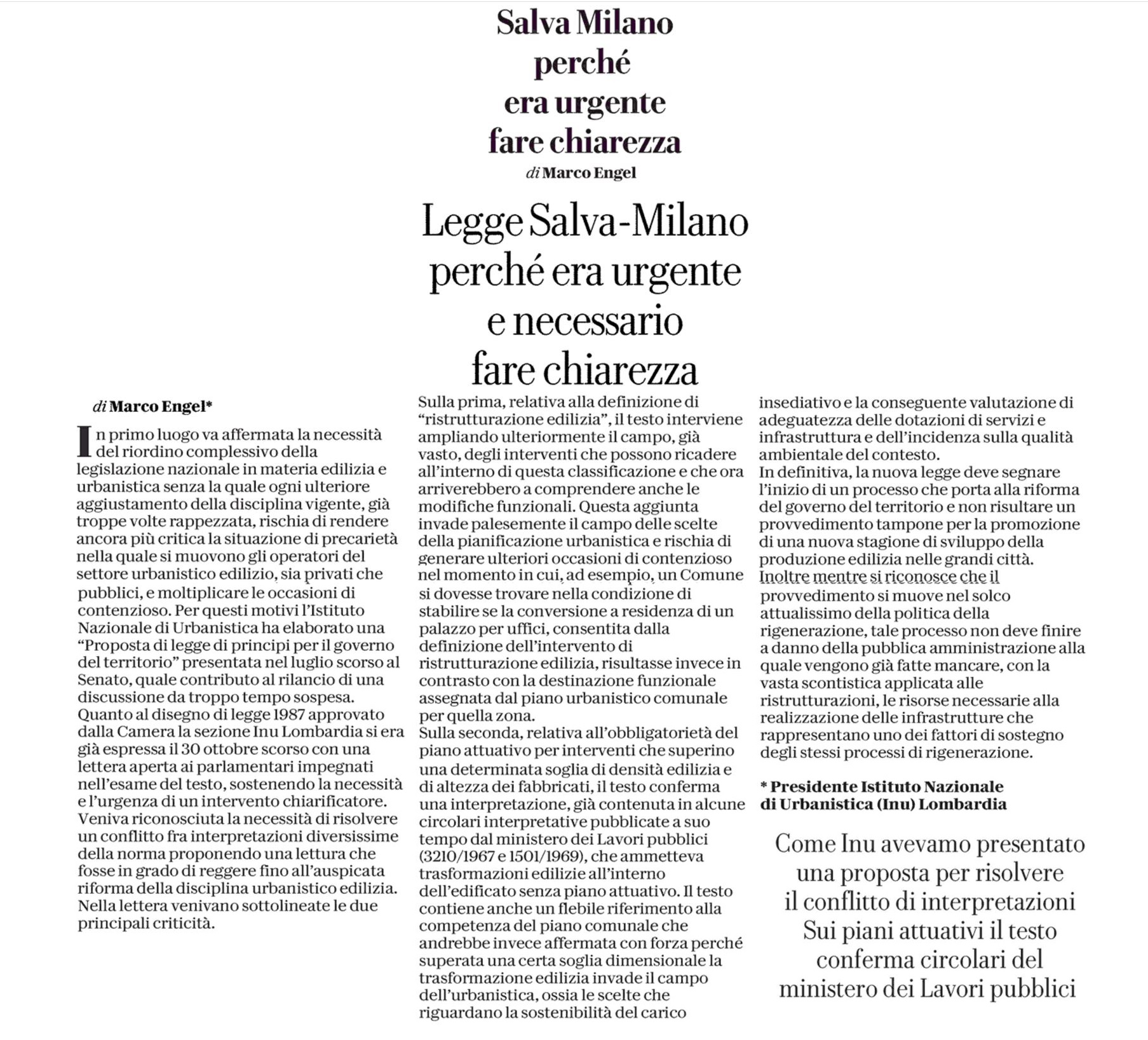 Articolo di Marco Engel, Presidente dell’Istituto Nazionale di Urbanistica (Inu) Lombardia, pubblicato da Repubblica.
