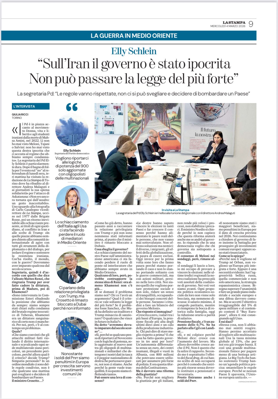 Intervista della Stampa a Elly Schlein.