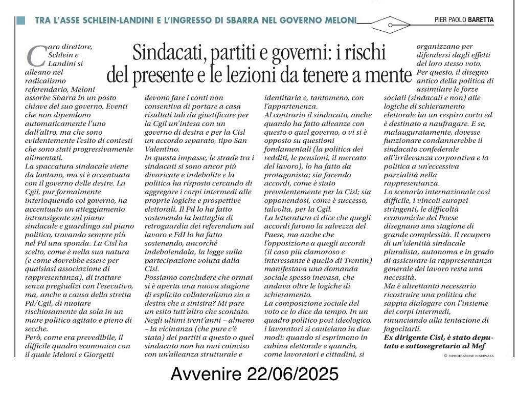 Tra l'asse Schlein-Landini e l'ingresso di Sbarra nel Governo Meloni.